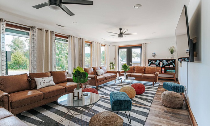 • Living Room: Queen sleeper sofa, gas fireplace, smart TV