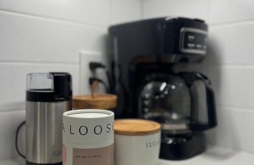 - Coffee maker w/ fresh coffee beans, sugar & creamer provided