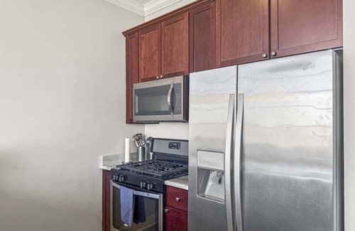 Kitchen: The kitchen is outfitted with state-of-the-art stainless steel appliances, including a refrigerator, oven, stove, microwave, and dishwasher. These modern conveniences make cooking and cleanup a breeze.
