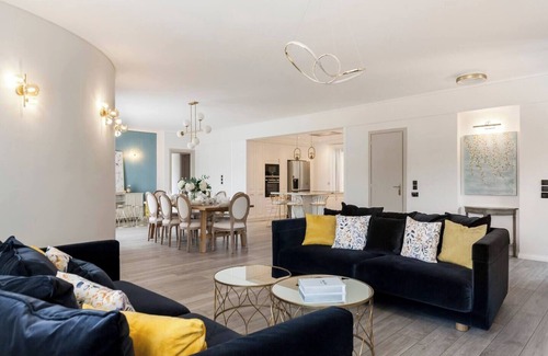 Luxury 3-bedroom condo in the Center of Athens Riviera in Glifada. Walking into the condo, a spacious living room, an open fully equipped kitchen, a dining room, as well as 3 bedrooms all on one floor. In the outdoors you can enjoy 80 sqm of balcony, offering stunning views of the sea and the surrounding hills. Your family will be close to everything when you stay at this centrally-located place.