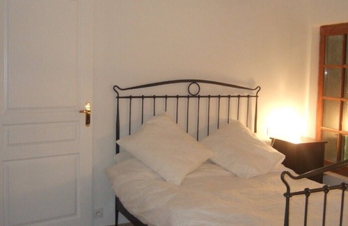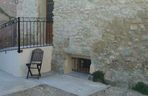 This beautifully restored old barn used to be the wine store for the Vigneron (winemaker) of the village. Access is through a gate from the street into a paved patio area. A ramp leads you to the front door, through which you access the main open plan living area. This comprises a large living room/kitchen/dining room, with a kitchen table to seat 8/10. The fully fitted kitchen has an electric oven and hob, and the living area has a settee, TV and internet access. At this level there are two bedrooms with double beds and shower rooms en suite. Only one of the bedrooms is wheelchair accessible.