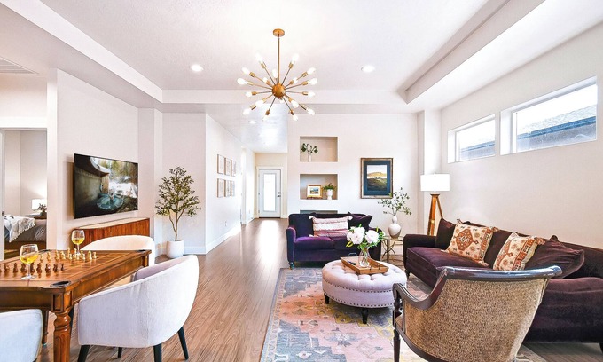 Indulge in luxury at our Meridian retreat, where modern sophistication meets cozy charm. Stylish furnishings, open layout, and a fully equipped kitchen make it perfect for socializing. The master bedroom with ensuite features a plush king bed for restful night. Step outside to enjoy the private backyard oasis. Conveniently located near attractions, shopping, and restaurants, it's ideal for solo travelers, couples, or families. Please add us to your Wishlist and book now for an unforgettable stay!