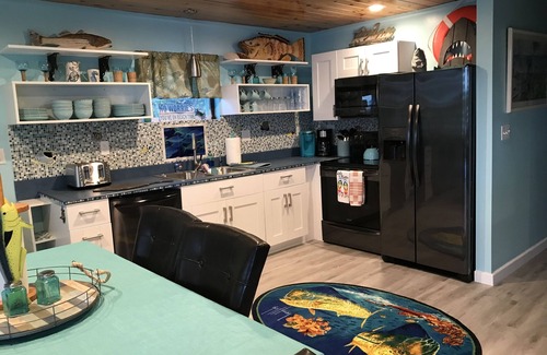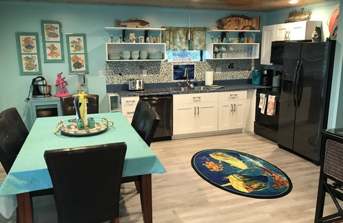 This 4 bedroom 4 bath house is one of the nicest places on the island. It sleeps 8 has king size bed in one bedroom and 2 queens in second bedroom the other 2 each have 2 twin beds. Has fully stocked kitchen with ice and water on fridge door. There are both coffee makers kuerig and regular pot bring your own coffee. Gas grill on porch that overlooks your boat dock. Living room with large sectional. The house has WIFI. Dock is no extra charge with water for rinsing boat off.