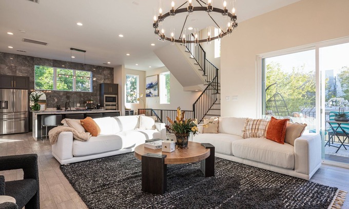 This quad-level home features private terraces on each level, with the master bedroom offering a massive walk-in closet and oversized spa-like bathroom. Relax on the cozy rooftop terrace with family, friends, or loved ones. Additional decks on the living room and master bedroom levels come equipped with workout and yoga equipment. We’ve put careful thought into every element of this home to create an environment that blends style, functionality, and a welcoming atmosphere for all guests. Whether you're here for business, a family getaway, or a weekend with friends, this 4-bedroom, 3.5-bathroom home has everything for a memorable stay. With parks, dining, and shopping options just minutes away, you'll have no shortage of things to do during your stay.