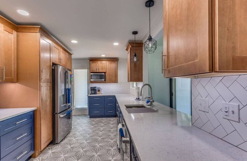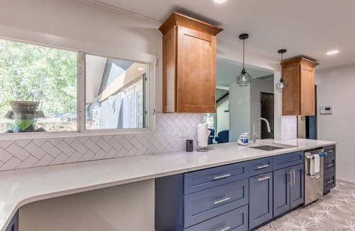 Contemporary home nestled under mature trees and professional landscaping. Walk into the kitchen with plenty of counter space to host family gatherings.