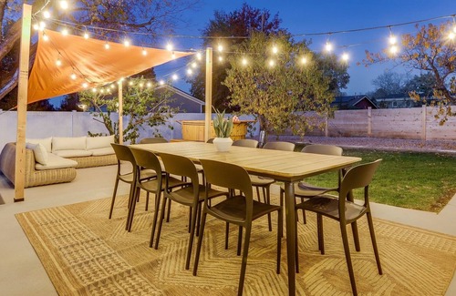 ✓Fully fenced outdoor space with hot tub, dining, and lounge space