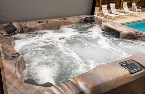 Private heated pool and oversized jetted spa overlooking bay views