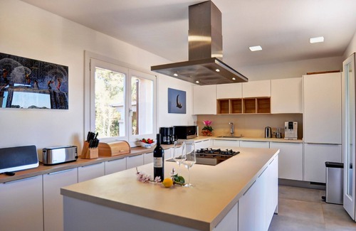 A Dream Kitchen and Dining Area The newly designed, high-quality white gloss kitchen is a dream for those who love to cook. Fully equipped with the latest appliances, this space offers everything needed to create delicious Mediterranean meals.