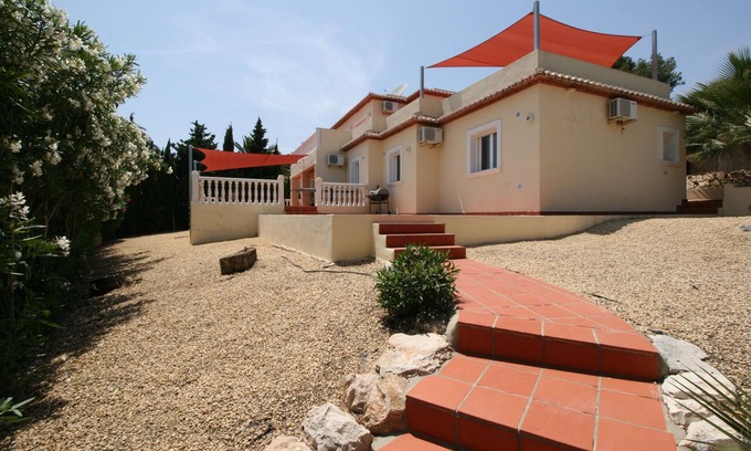 A large detached 6 bedroom home, sleeps 12 plus infants/tots. Casa Vista Bonita nestles in the heart of the fashionable and sophisticated town of Moraira. Set in a large plot with its own private swimming pool, sea view and landscaped garden, the property boasts many features including sun terrace with jacuzzi, pool table, table tennis and al fresco dining on the sun terrace. Upper level sun terrace partly shaded with stunning shade sails and lounging area with beautiful views of the sea. Air con, gas central heating (for Winter lets), large balcony, large wall mounted flat screen satellite TV, with a comprehensive multi channel package to include BT Sport, Sky Sports, Sky Cinema, sky Disney etc, and DVD/CD players. Fully equipped kitchen including washing machine and dishwasher. Free WiFi with 5G Fibre broadband. There is a mini- safe, two carbon monoxide detectors and 2 smoke detectors for guest security and safety. There is also a Verisure alarm that guests can use. It is about 15 minutes walking distance of bars, shops, supermarkets, restaurants and only 5 minutes drive from the beach front.