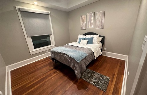 Newly renovated apartment full apartment with custom kitchen cabinets, stainless appliances, all high-end finishes. In unit washer and dryer, dish washer. Built-in fireplace and LED TV. 2nd Floor Apartment. Stairs access only.