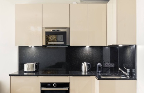 It also includes a fully equipped open kitchen with hotplates, a fridge and a oven. It comes with a dish washer, washer dryer, microwave, kitchenware, toaster, electric kettle and Nespresso coffee machine with capsules provided.