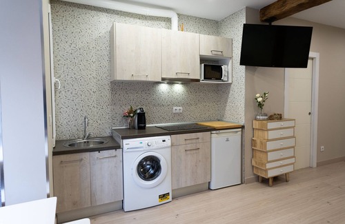 Apartment with private bathroom and living room-kitchen-kitchen equipped with all kinds of necessary utensils and appliances.