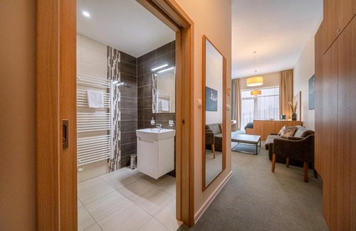 A recently renovated apartment, LUXURY Apartments Hrebienok C411 offers accommodations in Starý Smokovec. This 3-star apartment offers an elevator and full-day security. There's a terrace and guests have access to free Wifi, free private parking, and an electric vehicle charging station. Featuring a balcony and mountain views, the apartment includes 1 bedroom, a living room, flat-screen TV, an equipped kitchenette, and 1 bathroom with a shower. Towels and bed linen are available in the apartment. This apartment is allergy-free and non-smoking. The apartment offers a buffet or continental breakfast. Guests are welcome to eat at the on-site traditional restaurant, which is open for dinner, lunch, brunch, and cocktails. Strbske Pleso is 10 miles from LUXURY Apartments Hrebienok C411, while Treetop Walk is 15 miles from the property. Poprad-Tatry Airport is 9.3 miles away.