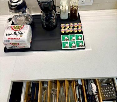 Luxury Appartement with Everything is located in Addison, just 5.4 miles from Zero Gravity Amusement Park and 8.1 miles from Preston Center. Guests staying at this apartment have access to free Wifi, a fully equipped kitchen, and a terrace. There's parking on-site, and the property offers an electric vehicle charging station. The air-conditioned apartment consists of 1 separate bedroom, 1 bathroom with free toiletries, a seating area, and a living room. A flat-screen TV is featured. The accommodation is non-smoking. Guests can enjoy the outdoor swimming pool and garden at the apartment. Highland Park Village is 10 miles from Luxury Appartement with Everything, while Southern Methodist University is 11 miles away. Dallas Love Field Airport is 5.6 miles from the property.