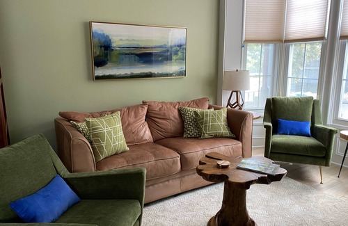 Many of the furnishings are made of sustainable materials, fair trade certified, or artisan-made. You’ll find body products in the bathrooms chosen for their emphasis on human and environmental health, and eco-friendly bed and bath linens and cleaning supplies are used to keep the space spotless and safe for you and your family. With the heart of downtown to your right and a scenic walk through classic, luxurious estates to your left, Earth is the peaceful, relaxing oasis waiting to welcome you home no matter how you choose to spend your day. The remaining 3 units are Fire, Water, and Wind – click on the owner profile for links to our other properties and see which of our spaces is best for you!