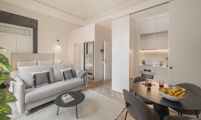 Flat in open space format, with good natural light, functional, with a contemporary and artistic decoration, ideal for a business or leisure travel context. It offers all the comfort and convenience for a pleasant stay, providing different areas in the same space: living area, TV with cable channels, equipped kitchen, dining area, bathroom with shower and double bed. Maximum capacity for 2 persons.