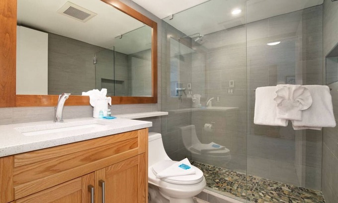 Easy and short walk down a trail to upper village which has multiple restaurants/bars and retail stores. Walk from upper village to main village in just 10-minutes.