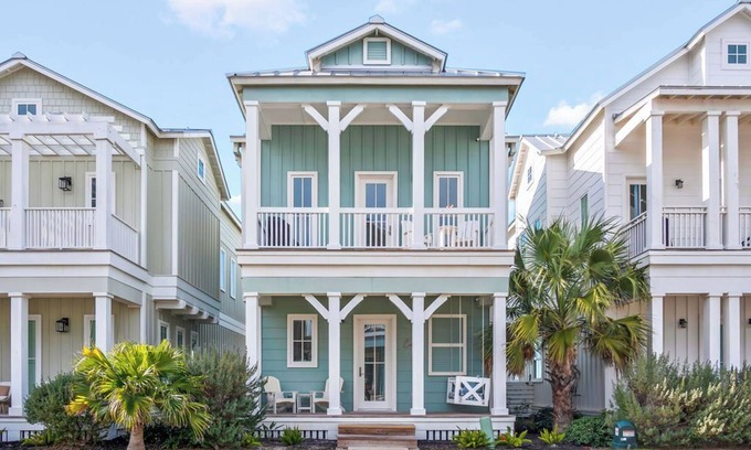 This cottage-style beach home is not only on a park and near Dylan’s pizza place, but it’s also close to Town Center. This social hub at Cinnamon Shore offers family activities and live music in peak season, and Lisabella’s, a bistro known for Mediterranean seafood-theme menu and its Mermaid Soup, will have a table for you. The Stillwater Pool, heated during winter months, is nearby, and it’s a short walk to the Dune Pool, where a fountains bubble and lounge chairs await. You’ll love the home’s four porches that expand living space, and an out-of-the-way stacked, washer-and-dryer makes it easy to stay for a few days.