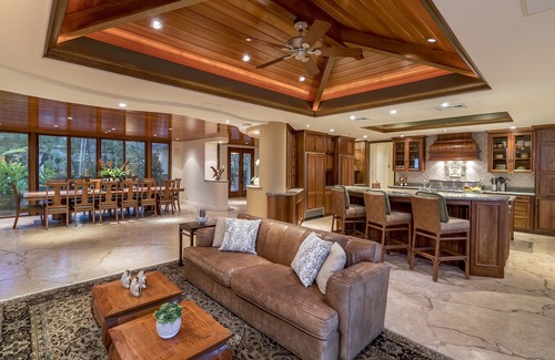 Kailua’s Kai Moena includes the Main House and Guest House. The nearly 15,000 sq. ft. interiors feature the height of Hawaiian island style with natural wood and stone floors, full kitchens and picture windows to maximize your experience of the natural beauty of Kailua.