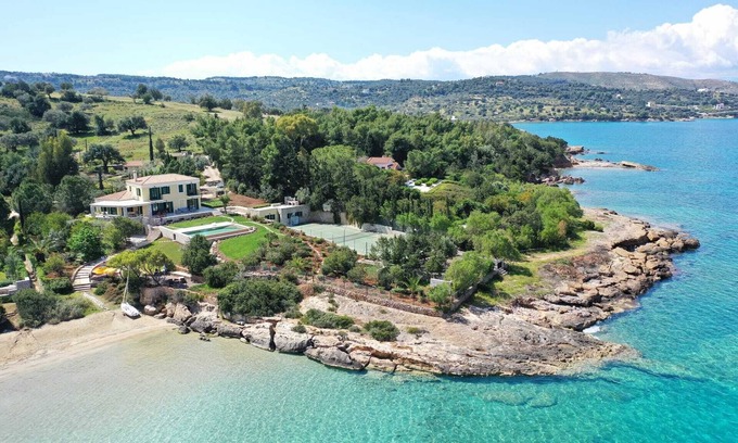 Luxury Beachfront Villa in Porto Heli – Private Pool, Tennis & Wellness Retreat