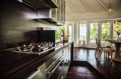The rental includes a staff of Villa Manager, Housekeeper, and Groundskeeper, fully-equipped kitchen, dining area with seating for up to 8 guests, premium mattresses, high thread count cotton linen, blackout curtains for night owls who prefer to sleep in, daily housekeeping & turndown service, eco-friendly bath products, satellite TV & AC in all bedrooms, Wi-Fi throughout the property, alfresco dining option. The plus of being inside the gates of the biosphere lends itself to a relatively private beach, terrace with lounge area, kayaks, paddleboards, and snorkeling gear.