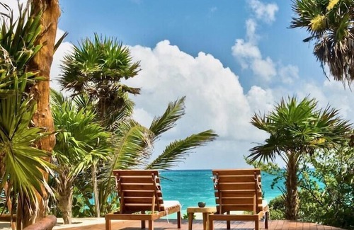Casa Niños effortlessly achieves a blend of rustic and modern architecture and décor. Raised above the intense blues of the ocean that reach the horizon in one direction and the tropical jungle with its freshwater Lagoon at the opposite horizon, this 3-bedroom beachfront house offers a secluded feel and privacy without the long haul into the deep reaches of the biosphere reserve, only 15 minutes from Tulums' beach area and 30 minutes from Tulum town.