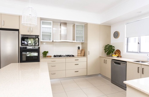 Haven House is a luxury beachside holiday home easy walk to the beach, Salt Village & playgrounds.