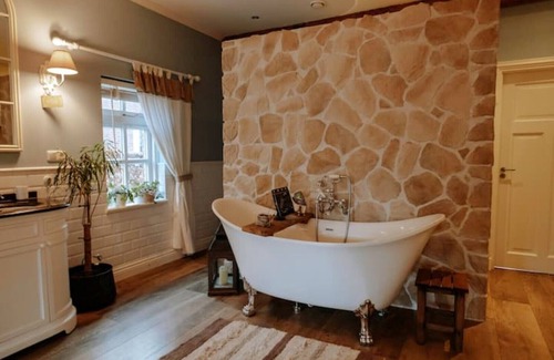 Stay in a luxurious bedroom with en-suite bathroom with bath, spacious walk-in shower, double sink and toilets and the price of 110 euros includes an a la carte breakfast.