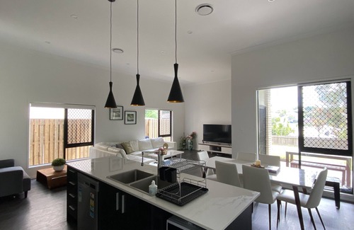 The luxury house has great areas for entertaining. House is within walking distance to public transport, shops, restaurants and the hub of Chermside.