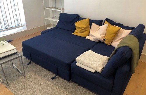 Newly renovated luxury city apartment with super fast wireless fibre broadband and home office. One King size bedroom and 1 double sofa bed in the living room if required for additional guests. Great central city location. Smart tv, dishwasher, washer dryer. Located at the site of a famous Jack the Ripper crime.