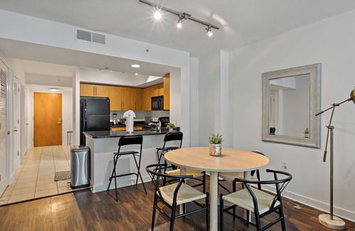 Experience urban living at its finest in this eccentric, centrally located two-bedroom, two-bathroom apartment. Nestled in a prime location, this luxurious residence boasts a fully equipped kitchen and access to top-tier amenities. Enjoy the vibrant city life with shops, dining, and entertainment just steps away. Ideal for those seeking a unique, upscale stay in the heart of the city.