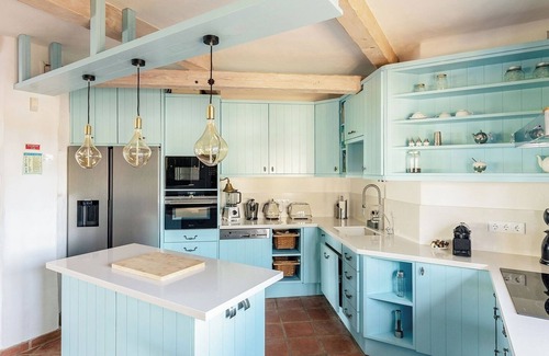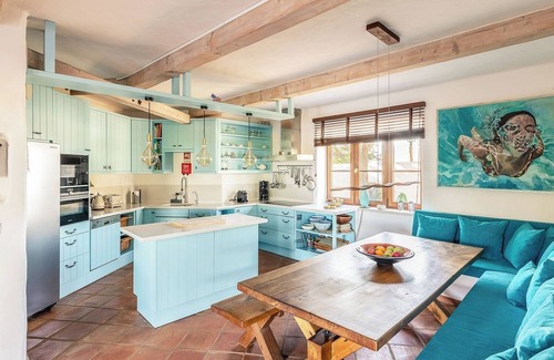 A clever combination of rustic woods, warm and welcoming heated terracotta floors, and an abundance of floor-to-ceiling patio doors creates a seamless flow throughout. The intelligent yet glamorous design spans two spacious floors, offering a harmonious blend of luxury and the relaxed feel of a country house by the sea.