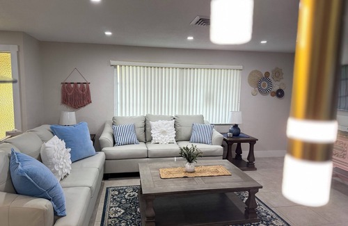 Discover the beauty of Largo from this fabulous 3-bedroom house. With a king bed, queen bed, and two bunk beds, guests will have plenty of space to relax. Enjoy the cozy living room with a sofa bed for extra sleeping arrangements. This phenomenal property also offers 2 bathrooms with a hair dryer provided. Our place will help you feel at home while you're traveling in Largo.