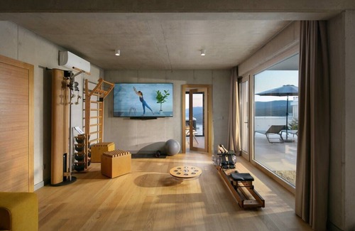 Fully air-conditioned, Villa Saturea features spaces with stunning sea views, complemented by a Finnish sauna and a fitness room equipped with designer NOHrD fitness equipment. Dive into the saltwater pool before unwinding on sun loungers to the serene backdrop of nature. Panoramic views of Kvarner Bay, the crystal-clear Adriatic Sea and verdant landscape of Rabac further enhance the experience of your stay. The outdoor lounge has been thoughtfully arranged for savouring romantic sunsets. Discover the local sorts of fragrant herbs and engage in a game of bocce in the secluded garden. Electric vehicle charging station available on site. Small pets on request are allowed, fees will apply.