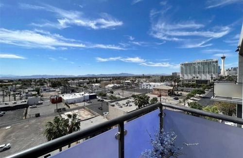 Enjoy this modern and spacious condo with breathtaking views and easy access to popular destinations. This centrally located condo is a 5-min walk to downtown Fremont and a 5 min drive to the Las Vegas Strip. The balcony overlooks both downtown on the left and the strip on the right being on the top 7th floor. The Vino rooftop also accessible viewing the whole Vegas Strip. All amenities (gym, Olympic pool, cabanas, jacuzzi). Free WIFI.