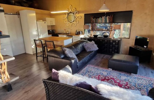 Fully equipped, sun filled cottage. You have an office work area, large light filled open plan living, Queen sized Bed in separate room and ensuite bathroom, kitchen with dishwasher and gas cooking and oven. Sun filled wrap around deck and lawn/ garden area for grounded yourself. Give it a try you will love it.