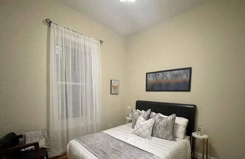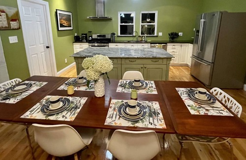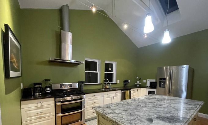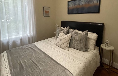 Luxury Contemporary 1800 sqft 3 Bedroom, 1.5 bath on the first floor of a two family house in the heart of the Historic Troy, NY. Open Floor Plan kitchen, dining room and living room with 16 foot ceiling with skylights, large master bedroom with bay windows, walk in closet, gorgeous hardwood floors throughout. Two other bedrooms with queen beds and glass mirrored closets. Washer and dryer in unit and a back yard with fire pit. Feels very private. Walking distance to downtown and lots of stores, restaurants, bars etc.