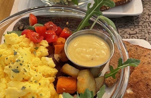 10 acres of stunning parklike setting, manicured gardens, and a creek that runs the entire length of the property with bridges and paths to stroll. In the Summer enjoy breakfast out in the fenced courtyard with blooming colourful flowers and trees or inside in our private Breakfast room.