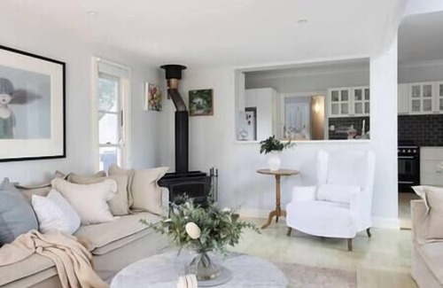 The Witta Chapel beautifully marries vintage charm with modern amenities. The open-plan living areas, featuring vaulted ceilings, create a sense of spaciousness, and the bifold doors seamlessly connect the indoors to an expansive outdoor entertaining area. This outdoor deck is graced with quality outdoor furniture, providing the perfect setting for al fresco dining or simply basking in the serenity of the surrounding gardens. The country-style kitchen, complete with Smeg appliances, is a chef's dream, making meal preparation a pleasure. To elevate your stay to the pinnacle of comfort, you'll find state-of-the-art coffee machines in both homes, ensuring that your caffeine fix is always within reach. These modern conveniences are seamlessly integrated into the vintage-inspired ambiance of the property.