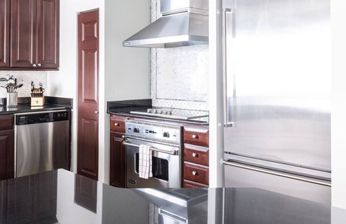 Located in a full-service building with elevator access and just steps from Michigan Avenue, the penthouse combo is comprised of 2 side-by-side apartments that have been professionally designed, sleeping up to 20 people total and is perfectly situated for groups, families, and those traveling for work. In each unit, everything flows around the spacious and open living rooms and kitchen which have some of the most breathtaking views of all of Chicago and the Lake, and features high-end cooking appliances and designer level finishes, which creates a unique environment for entertaining and gathering with your group.