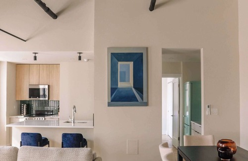 Located in a full-service building with elevator access and just steps from Michigan Avenue, Lake Michigan, and Wells Street, your penthouse loft apartment was professionally designed, sleeping up to 8 people and is perfectly situated for groups, families, and those traveling for work. Everything flows around the spacious and open living room and kitchen, featuring high-end cooking appliances and designer level finishes, which creates a unique environment for entertaining and gathering with your group.