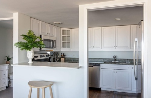 Located in a full-service building with elevator access and just steps from Michigan Avenue, your penthouse apartment was professionally designed, sleeping up to 12 people and is perfectly situated for groups, families, and those traveling for work. Everything flows around the spacious and open living room and kitchen which have some of the most breathtaking views of all of Chicago and the Lake, and features high-end cooking appliances and designer level finishes, which creates a unique environment for entertaining and gathering with your group.