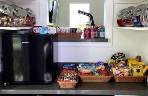 Experience luxury in our Glamping Domes, ideally situated next to the beach club. Each dome features a unique, rounded design that promises a one-of-a-kind experience. Inside, you'll find a large screen TV, a cozy lounging couch, two queen beds, a mini fridge, and all the essentials for making tea or French press coffee.