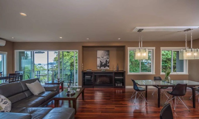 This spectacular Penthouse offers 3,000 sq ft of living space on the edge of Downtown Nanaimo, with some ocean and mountain views from the terrace. Explore the large variety of bars and restaurants within walking distance. Downtown Nanaimo Waterfront is just a 5 minute walk from the apartment and a 10 minute walk to the heart of downtown. Drive 4 minutes to the nearest grocery store. Enjoy complimentary WiFi and free private parking during your visit.