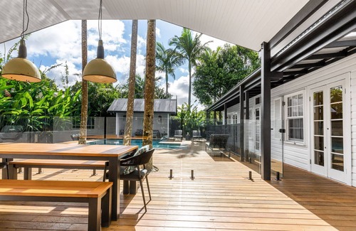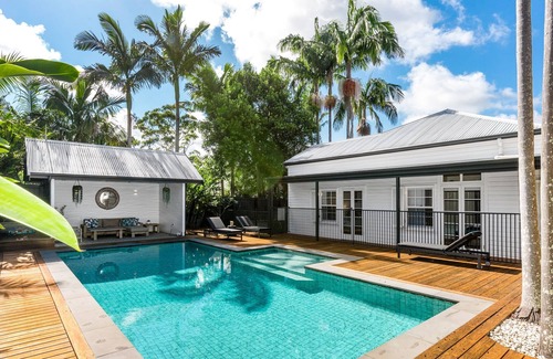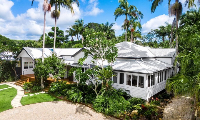 Step into the timeless elegance of Bangalow Estate — a grand 1905 homestead set on a private tropical estate just 2 minutes from Bangalow village. With a magnesium pool, lush gardens, and beautifully restored interiors, this inviting farmhouse blends heritage charm and luxury. Perfect for family holidays, romantic escapes, or group stays with pets — a tranquil retreat to relax and reconnect.