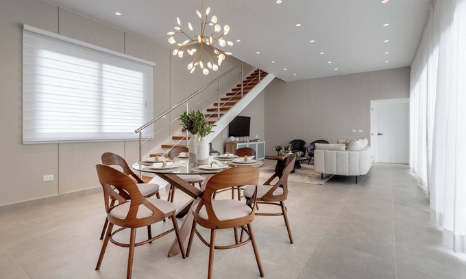 Step into luxury at our modern villa with designer interiors, a rooftop patio, and sun deck.