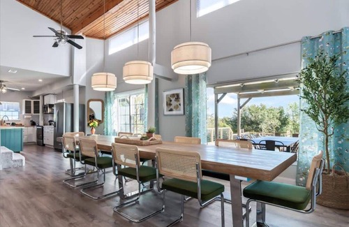 Welcome to Luxury Farmhouse Retreat at Decker Creek, a comfy and chic 7-bedroom, pet-friendly retreat located 20 minutes from downtown Austin and 13 minutes from Austin-Bergstrom International Airport. Bring your friends and family to enjoy this private, 5-acre compound and get ready to relax and unwind in style at your pool with surrounding deck for entertaining and a freestanding hot tub for amazing stargazing at night. During the day, enjoy breathtaking views from the upstairs balcony.