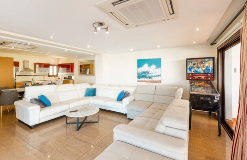 Luxury Five Bedroom Apartment with Pool is located in Protaras. Luxury Five Bedroom Apartment with Pool provides accommodation, featuring Fireplace/Heating, Entertainment, Pool, among other amenities. This Villa features Fireplace/Heating, Entertainment, Pool, to make your stay a comfortable one.