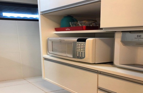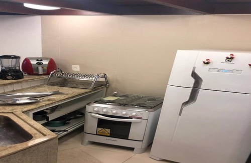 The apartment is furnished and air conditioned, With a spacious and ventilated balcony with barbecue and dining table. The living room is air-conditioned and has a beach-style décor but with a sophisticated touch. with 2 suites, 2 bedrooms and a maid, 4 bathrooms, Wifi, kitchen with all utensils. In addition to a deck on the first floor using a cozy sofa, minibar and Sky TV. The apartment has 2 flat screen TV's, Kitchen equipped with Microwave, Stove, Refrigerator, Gelagua, AirFryer, Blender and etc ...