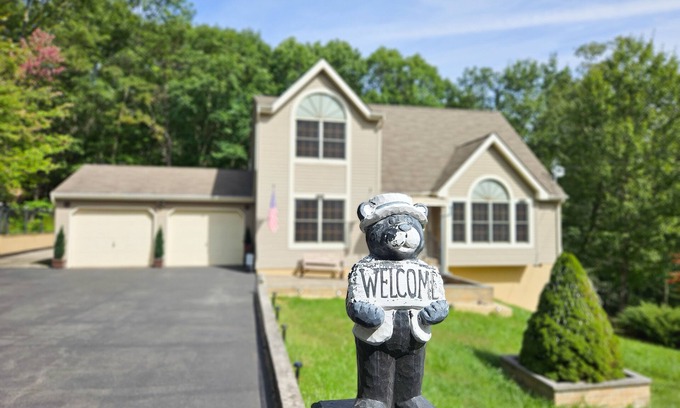 Luxury getaway in vibrant woods, Jacuzzi, Hot Tub, Pool, Star Gazing is located in Bushkill. Luxury getaway in vibrant woods, Jacuzzi, Hot Tub, Pool, Star Gazing provides accommodation, featuring Bedding/Linens, Skiing, Laundry, among other amenities. This House features Bedding/Linens, Skiing, Laundry, to make your stay a comfortable one.